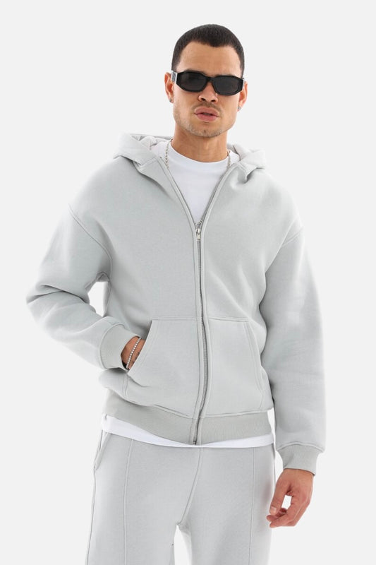 einfarbiger Basic Oversized Zip-Hoodie Sweatjacke Unisex