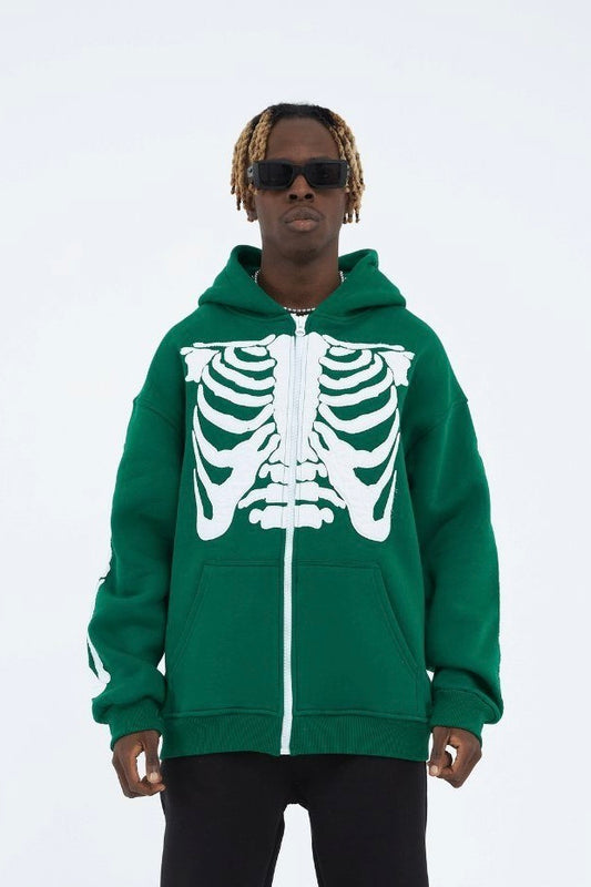 Hoodie mit stickerei Skelett Zipper Baumwolle Jacke
